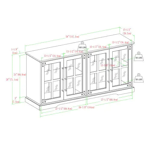Modern Farmhouse Windowpane Glass-Door TV Stand For TVs Up To- Grey Wash